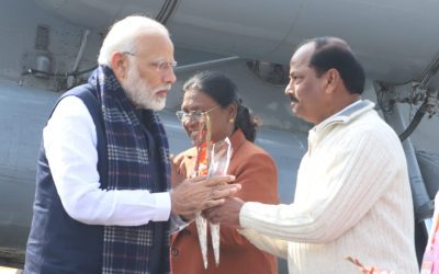 Prime Minister Narendra Modi reaches the Chiyanki airport located in Medininagar. Governor Draupadi Murmu and Chief Minister Raghubar Das welcomed him. read more
