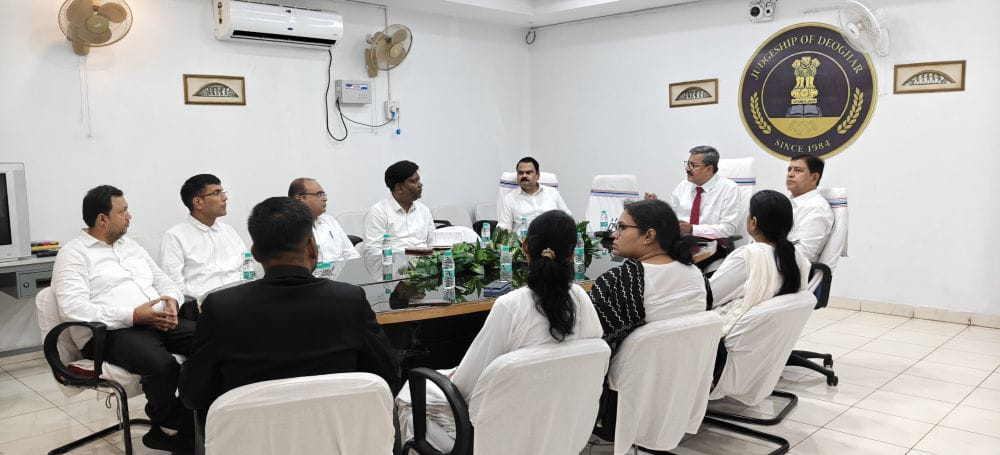 Deoghar: Ahead of the National Lok Adalat scheduled for May 9, 2026, a high-level preparatory meeting was held on Tuesday under the chairmanship of Principal District and Sessions Judge, Kaushal Kishore Jha. The meeting took place in the court auditorium and was attended by judicial officers, bank representatives, and officials from various departments.