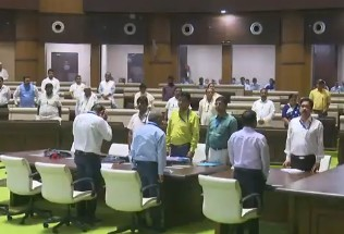 The entire House stood in silence, followed by thunderous slogans echoing his legacy: “Veer Shibu Soren Amar Rahe” and “Dishom Guru Amar Rahe”.