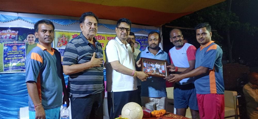Deoghar: The Durga Temple ground in Bhojpur lit up on Monday evening as Maa Durga Sporting Yuva Club organized an exciting night football tournament under floodlights. The event was inaugurated by District Olympic Association president Dr. Sunil Khawade, who interacted with the players and ceremonially kicked off the tournament.